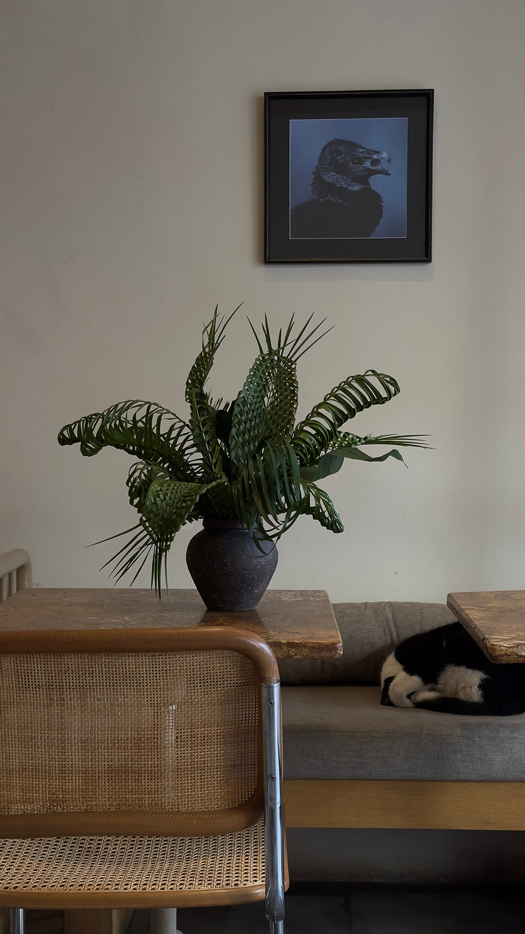 Tek bir renk paletinde — yeşilin tonlarıyla — sade ama güçlü bir ifade yaratıyor.