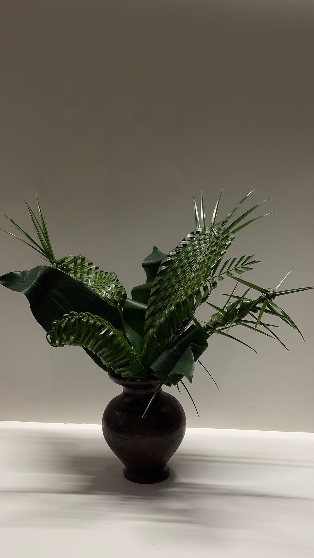 Yalnızca yapraklardan oluşan bu kompozisyon, form ve doku üzerine yapılmış bir çalışma.
