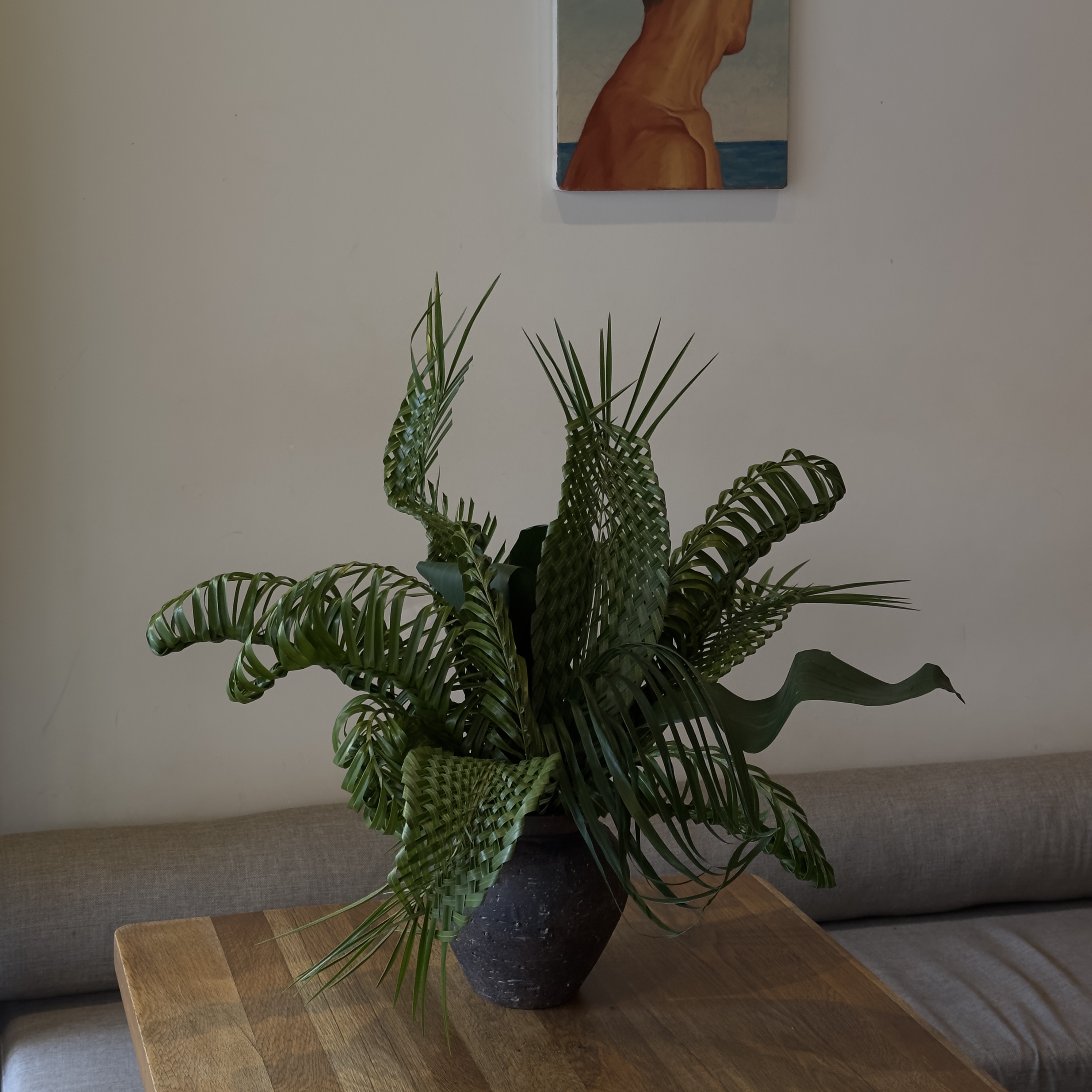 Doğal malzemelerle hazırlandığı için zamanla formu değişecek ve vakti geldiğinde solacaktır; bu durum tasarımın doğallığının bir parçasıdır.