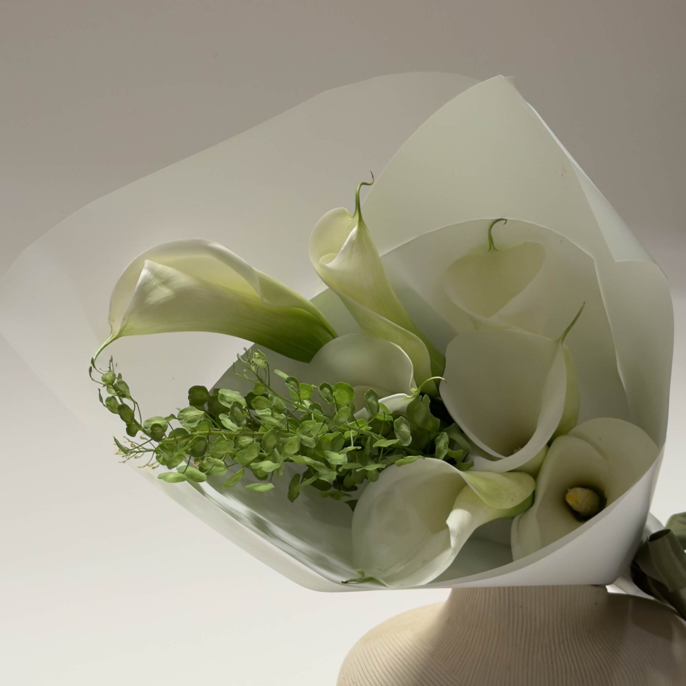Mono Buketler serimizin bu tasarımı, zarif gala çiçeklerinden hazırlanmıştır. Tek bir çiçek türünün doğal formunu öne çıkaran bu buket, sade ve zamansız bir zarafet sunar.